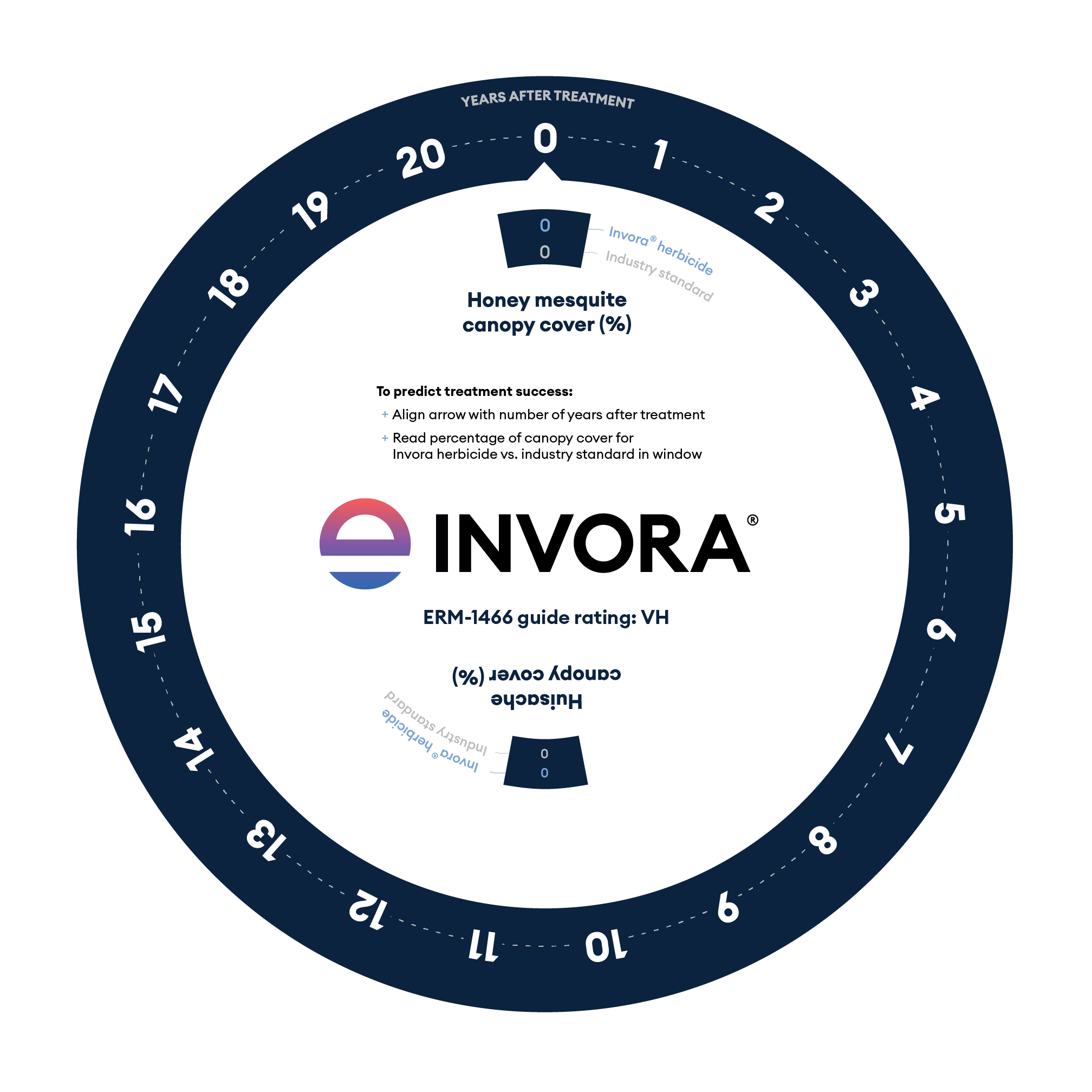 A personalized mailer containing a dial that shows how long Invora controls mesquite and huisache compared to the industry standard chemical. We surrounded the dial with facts about the product and included academic papers about the original Texas A&M Invora trial data to appeal to our highly educated audience. CTAs prompted recipients to download additional information on our landing page.